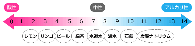 例えば、レモンやリンゴなど酸味の強いものは酸性、石鹸や炭酸ナトリウムなど洗浄力のあるものはアルカリ性が多いです。 つまり、アクアネオのpH12.7というのは、比較的高いアルカリ性と言えます。